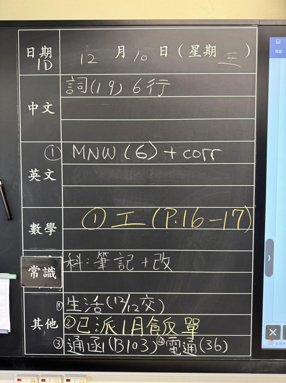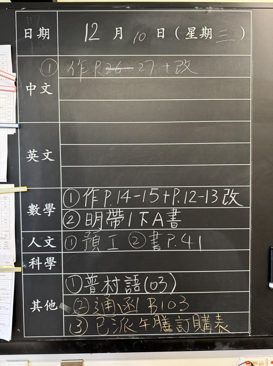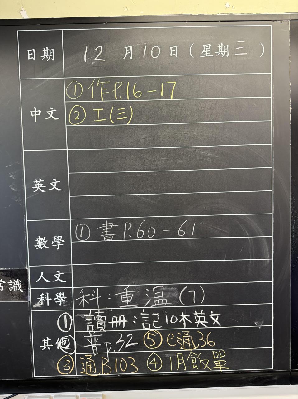 班別家課